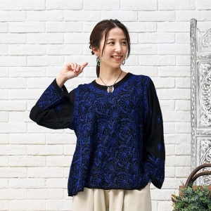 - ブロックプリントの名産地インドのバグルー村で、泥防染技法により染め上げられたシリーズ。手仕事が生み出す温もりある模様で、