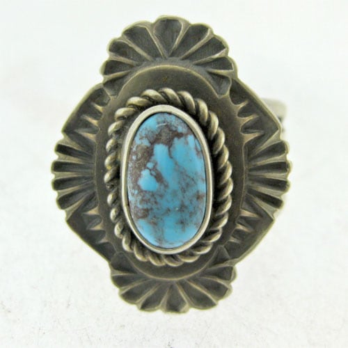 1958年に生まれ、1973年からジュエリーを作っています。ハイグレードの石を使った重量感のあるスタンプワーク、現代的なデザインのインレイなど彼のジュエリーのスタイルは非常に幅広く、ヨーロッパのトレーダーにも大人気です。彼のジュエリーはインディアンジュエリーとしてももちろん、現代的な宝石のようなジュエリーとして扱われることが多くなっています。彼の刻印にはクリスチャンであることを示す、魚のマークが使われることが多いです。