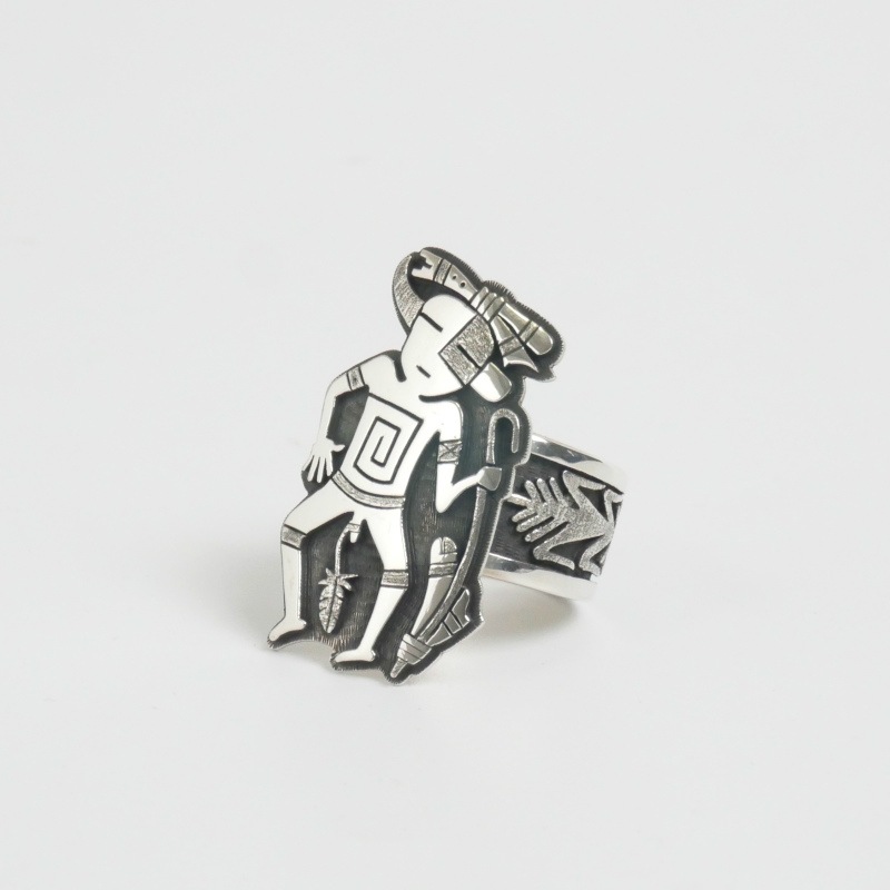 メッセンジャーと呼ばれる、古い壁画に描かれた一つだけ角のあるカチナが描かれた、神聖なリング。