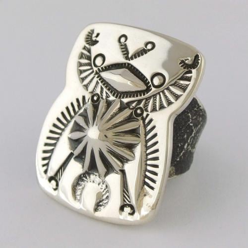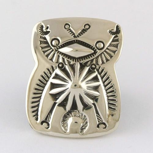 厚みのあるシルバーは昔の手法にこだわった、インゴットシルバー。スタンプは、1880年代から1930年代の古いスタンプをこの作品のために手に入れ、それを新しいスタンプと混合させて古いバグデザインを復刻した作品。もともとナバホ族は、家の中にいるバグ(昆虫や虫)を家を守ってくれるものとして信仰してきました。このバグデザインを唯一継承する巨匠マッキープラテロの技を肉眼で見ることのできる数少ないアーティストであるリンドン。その巨匠の代表作であるバグデザインを受け継いだ、貴重な作品です。厚みのあるシルバーとバグの作品は、マライカ限定のシリアルナンバー入りです。