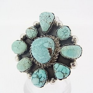 ネバダ州の鉱山で、開山していたのは1929年から1961年まで。青~空色にいわずと知れた黒~金色のスパイダーウェブが入っているのが特徴です。中でも細かいマトリックスがぎっしりと入り、深い青をしているものは非常にハイグレードです。希少で人気が高いため、市場に出回るのはコレクターの収集していたものがほとんど。もちろん、閉山している鉱山なので非常に価値があるターコイズです。