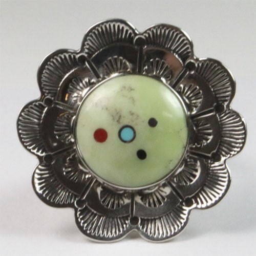 1972年生まれ、ナバホ族のモザイクインレイワークを得意とするアーティストです。1999年より夫Ernestの下でインレイワークのジュエリーを作り始めました。巨匠チャールズロロマに深い感銘を受け、しばしばコンテンポラリーなインレイワークもします。立体的な石のカットと華やかな色彩を組み合わせる彼女のジュエリーは非常に完成度が高く、現地でも高く評価されてます。フェニックスやロサンゼルスのショーで数々のベストアワードを獲得する実力派のアーティストです。