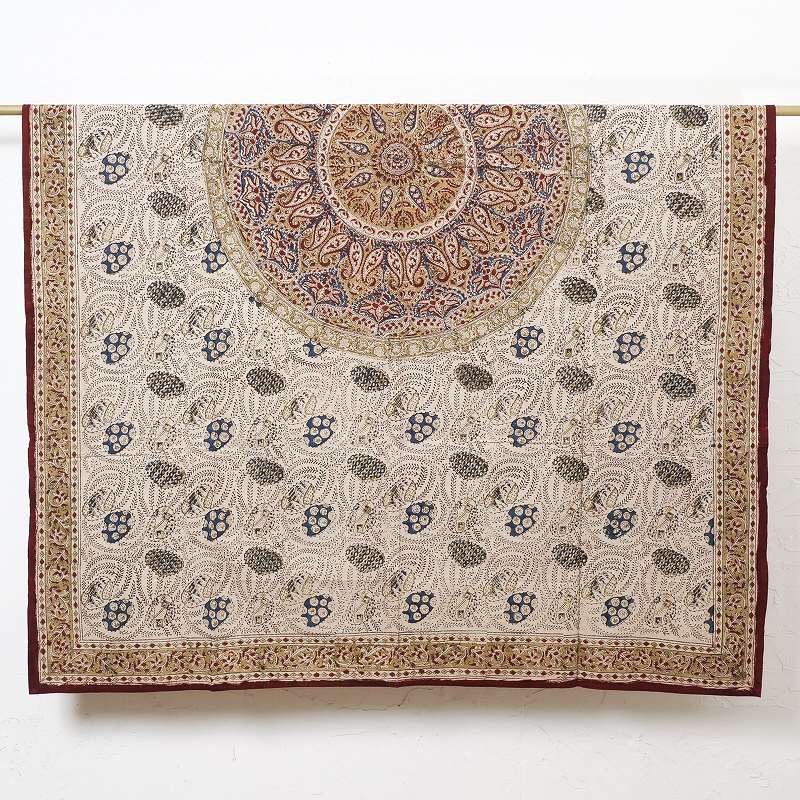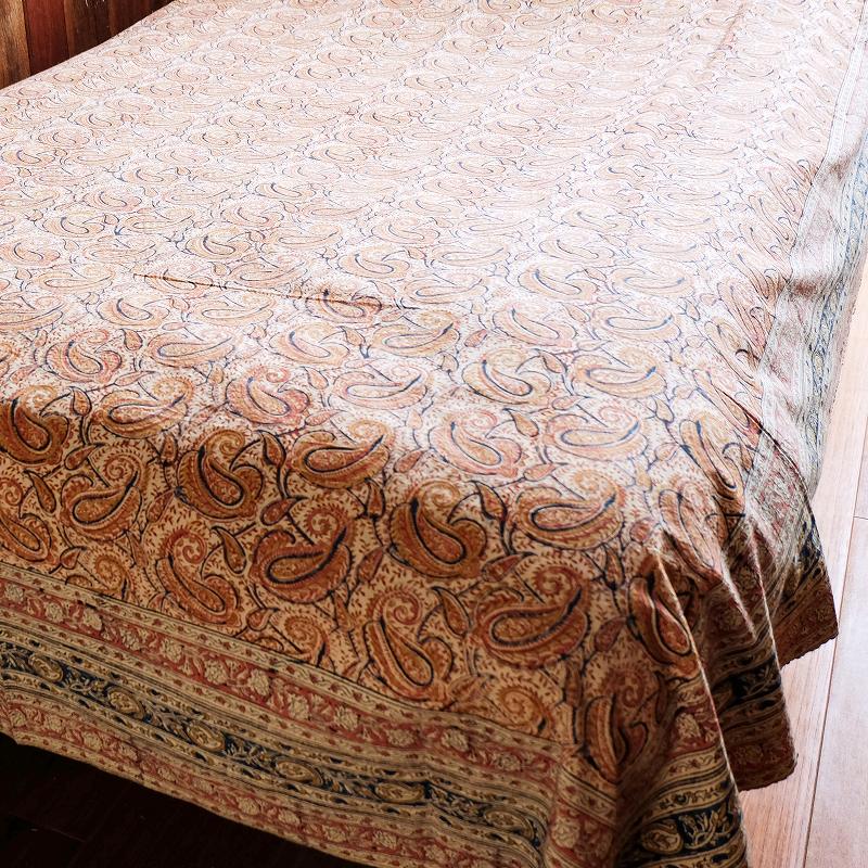 植物をモチーフにした細やかな柄が全体に施されたマルチクロス。天然染料による渋みのある色合いが魅力で、お部屋のインテリアにも馴染みやすいアイテム。ベッドカバーやソファーカバーとしてだけでなく、様々な用途で活躍できます。