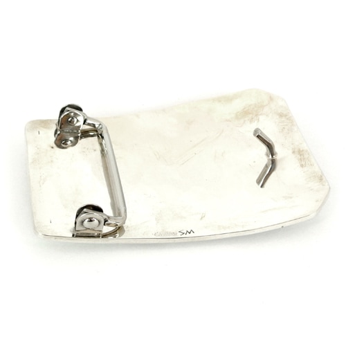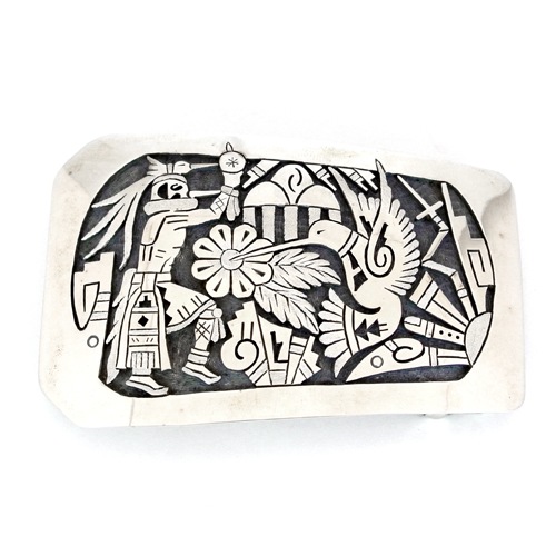ホピ族Sparks Masawytewaのハミングバードカチナのオーバーレイバックルです。細かいカットが美しいハミングバードカチナ&ハミングバードのデザインです。