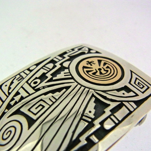 いわずと知れたホピ族のオーバーレイの巨匠、ジェイソンタカラ。1955年HopiのShungopavi村に生まれスノー(雪)氏族に属し、現在はアリゾナ州ホーブロックの自宅で作品を作っています。 数々の賞を受賞し様々な雑誌でとりあげられているように、メイズに代表される彼のオーバーレイはそのカットの細かさと14金などとの組み合わせが大変美しいものとなっています。 メイズ以外のモチーフにはパターン(型)がなく感情やイメージから一つの作品を作り上げるため、 様々なモチーフが組み合わされ、その時によって少しずつ違っていて同じ作品がないというのも特徴。ジュエリーを通してホピの魂や文化を表しているという、まさに真のアーティストと言えるジェイソン。突然頭の中にイメージがわきあがってくることがよくあり、夜中でもインスピレーションがわくとむくっと起き上がってデッサンするとか。 そんな美術品のようなジュエリー、本当に一生の宝物になります。