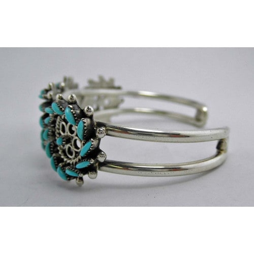 Zuniで1920年ごろから作り始められた、ニードルポイントという、小さな石と金属を組合せてゆくジュエリー。
