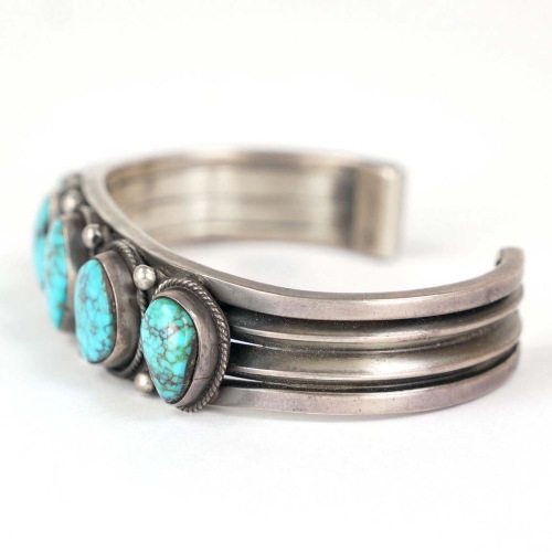 とても硬く、錆びたような赤色の複雑なスパイダーウェブが入り、濃い青色から青緑色が特徴です。その硬度は穴を開けてネックレスにしたり出来るほどです。ローンマウンテンやランダーブルーにも匹敵するほどの小さくてハイグレードのナゲットも産出します。大変有名で高価な石のひとつです。
