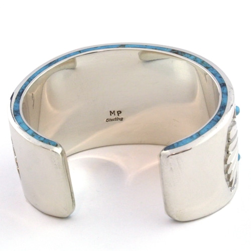 1975年にアリゾナ州で生まれたマイクペリー。ヘビーゲージの厚いシルバーを使った細かいオーバーレイで、若手ながらにして一躍有名になった彼の作品。インレイ、オーバーレイ、ストーンワーク、すべてにおいて完璧な彼の作品は、Lee Yazzie、Vernon Huskie、Ray Tracyという大物アーティストの作品を尊敬し、そこからアイディアを得ながら彼ならではの作風を生み出し、現在は様々なギャラリーで注目されるアーティストです。