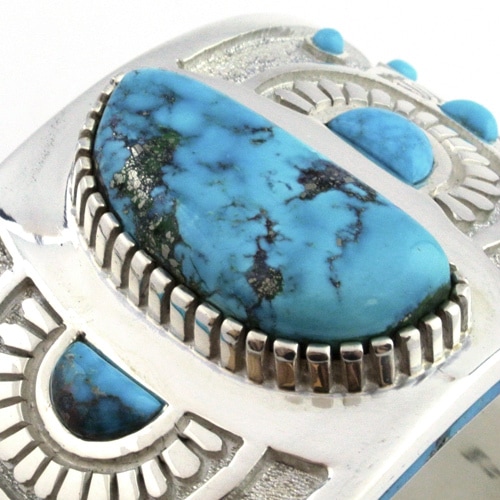 また溢れる重厚感は単なるシルバーの厚みだけではなく、サイドにターコイズをインレイしています。