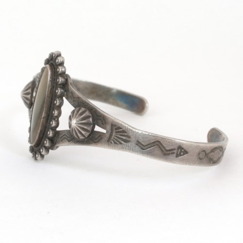 1930~50年代のフレッドハーヴィースタイルのバングルです。メキシコ貝を使った、珍しいデザインのバングル。ベル社の刻印が入っています。