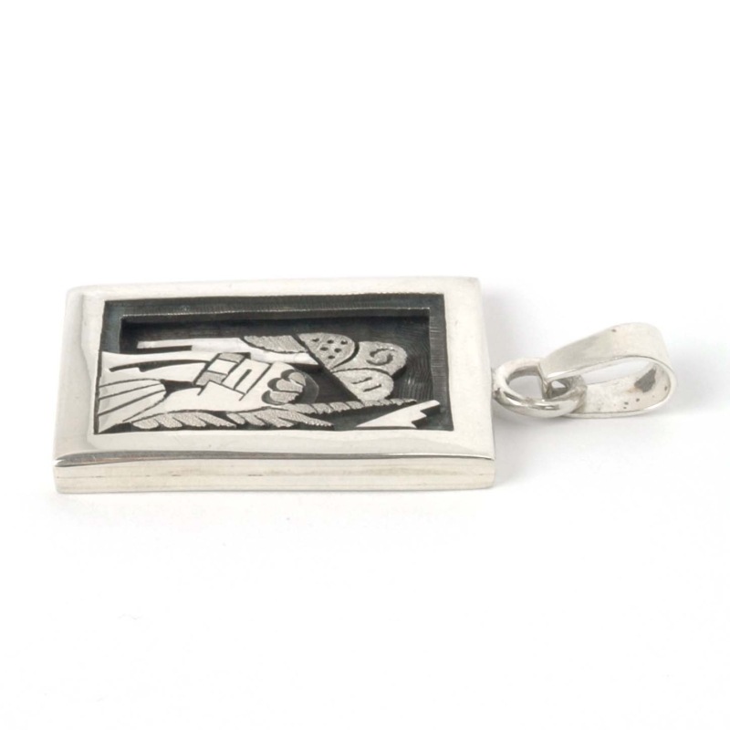 ホピ族Sparks Masawytewaの手の込んだ3Dボックスペンダントです。
