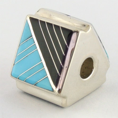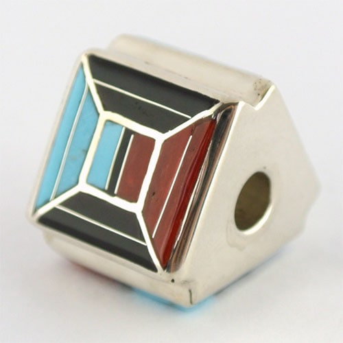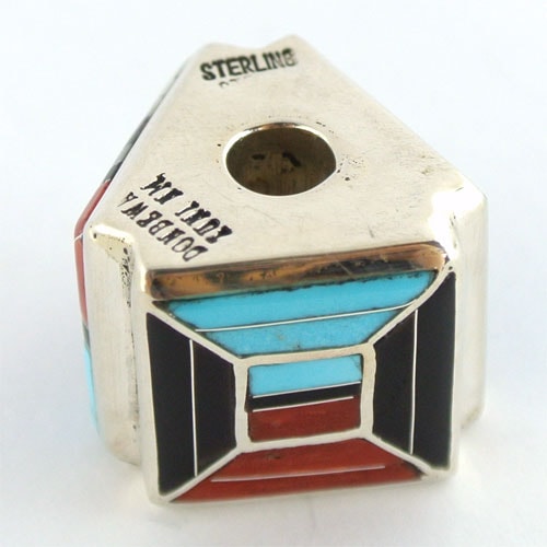 サンフェイスが回る、スピナーデザインと呼ばれるスタイルで人気のズニ族アーティスト、ドンデワ。インレイの細かさと美しさ、表面の滑らかな加工、そのデザイン性はジュエリーショーで数々の賞を受賞しており、世界中にファンがいます。