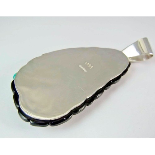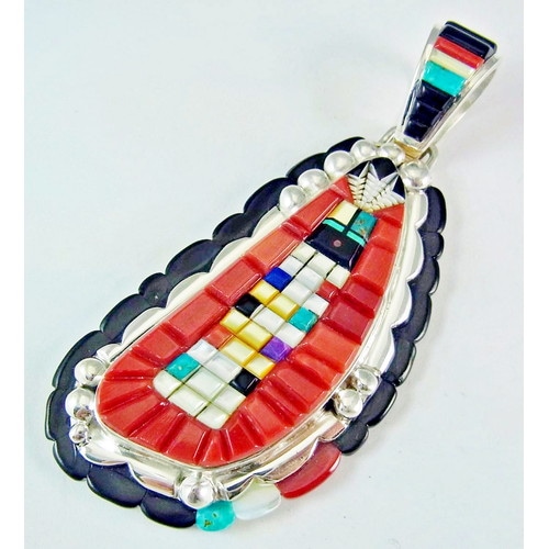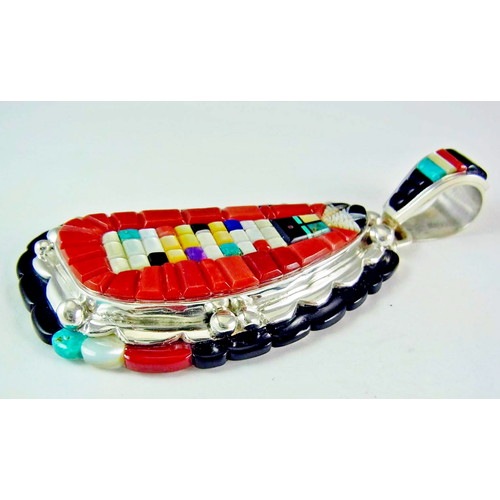 ナバホインレイの粋を極めたアーティスト、ウィルバートの渾身の立体インレイです。サンフェイスとイーグルフェザーをモチーフにした、色みも素晴らしいペンダント。