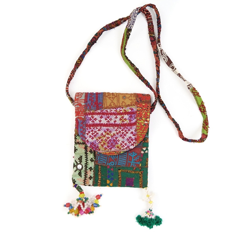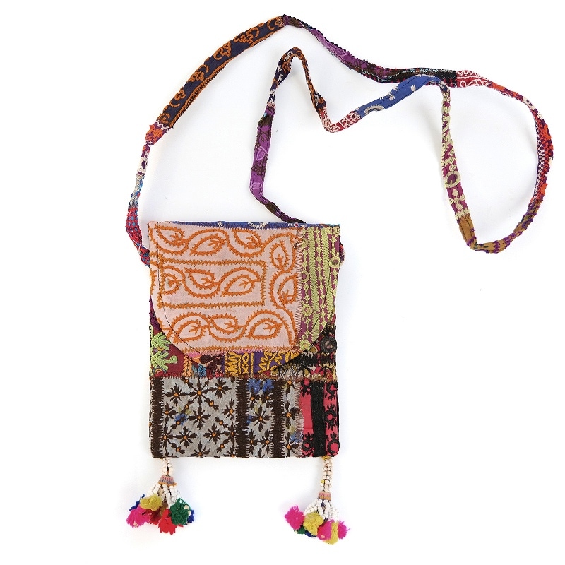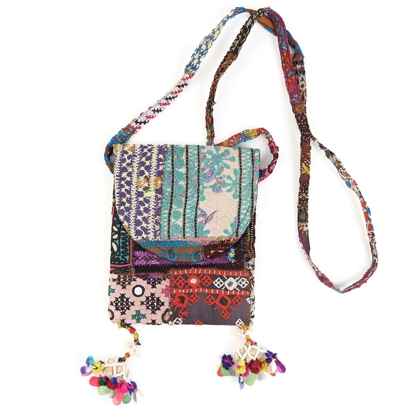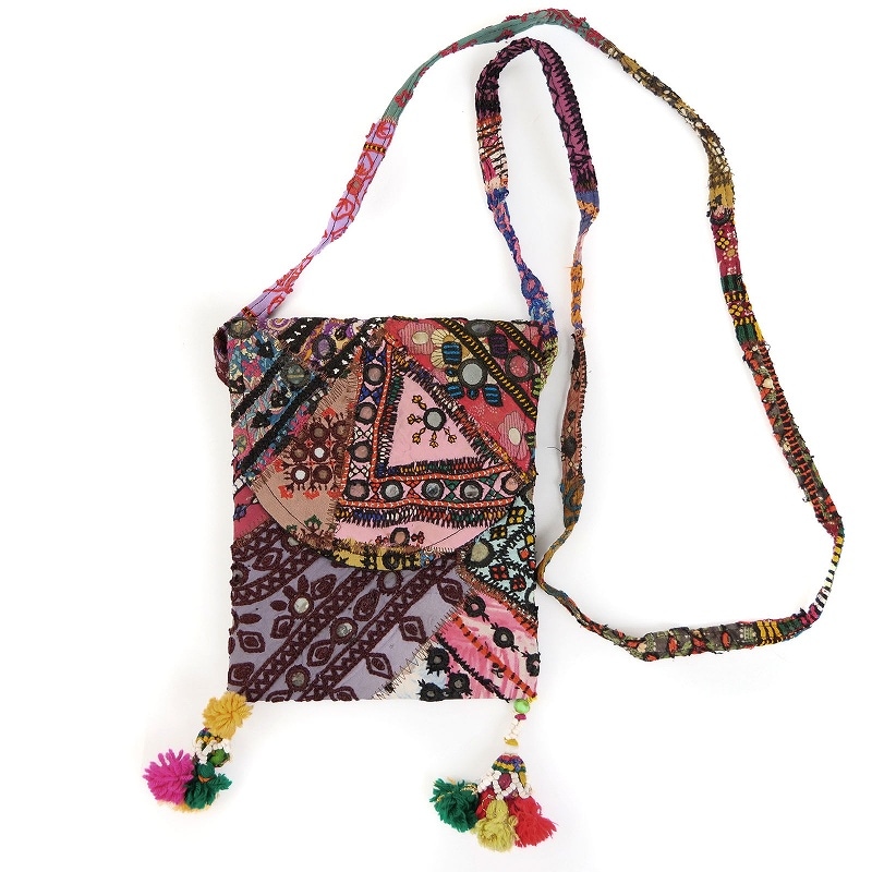 パキスタン古布パッチハンドル2way山羊革ショルダーバッグ