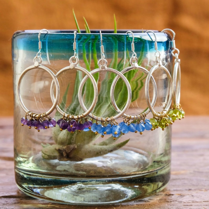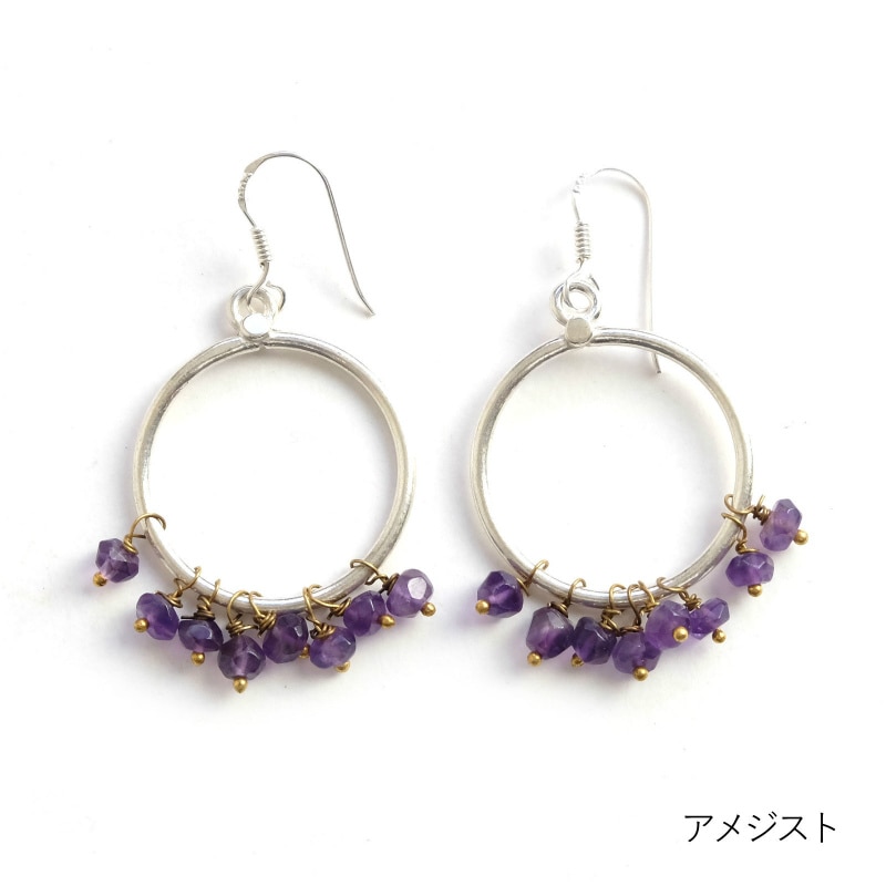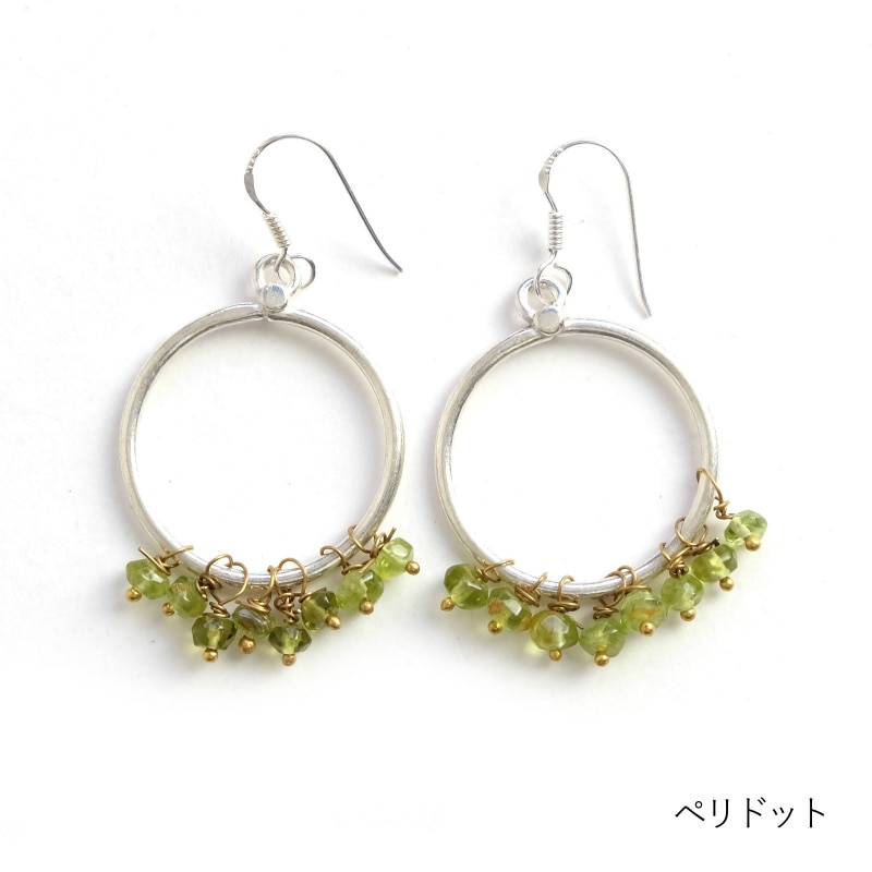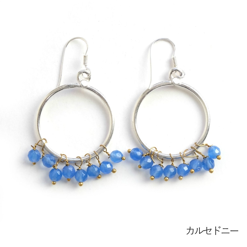 シンプルな中にオリエンタルなニュアンスがひかるピアス。パワーストーンの爽やかさが効いたアイテムで女子らしさをプラス。かっちり系スタイルにもカジュアル系スタイルにも合わせやすい万能ピアス。