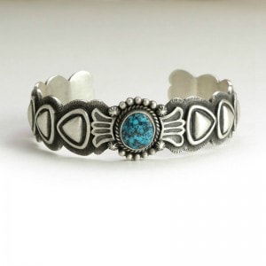 1955年アリゾナ州に生まれ、1970年代後半からジュエリー製作を始めたトーマスジム。 Ronnie Bedonie、Pat Bedonieとも血縁があり、Wilson Jimを兄弟に持つトーマスは、家族の影響でシルバー製作を始めました。ヘビーゲージのシルバーを使ったオールドスタイルを貫く彼の作品は、様々な賞を獲得し、今では数少なくなった本当のオールドスタイルのスタンプワークが感じられるものばかりです。