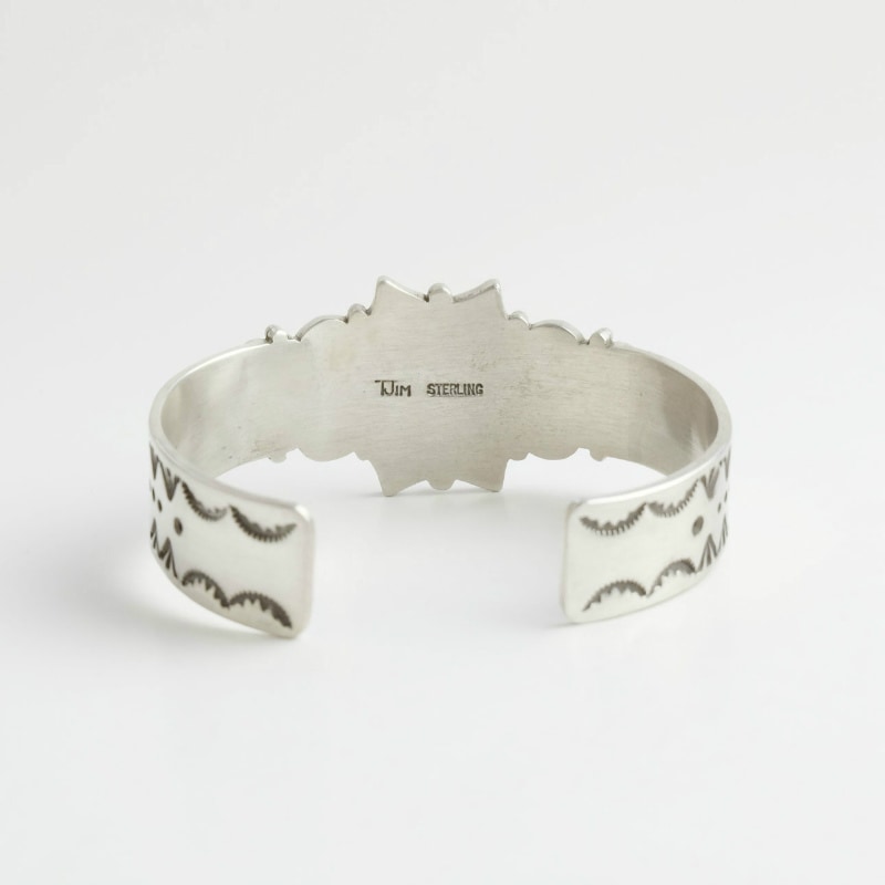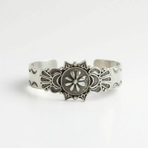 1955年アリゾナ州に生まれ、1970年代後半からジュエリー製作を始めたトーマスジム。 Ronnie Bedonie、Pat Bedonieとも血縁があり、Wilson Jimを兄弟に持つトーマスは、家族の影響でシルバー製作を始めました。ヘビーゲージのシルバーを使ったオールドスタイルを貫く彼の作品は、様々な賞を獲得し、今では数少なくなった本当のオールドスタイルのスタンプワークが感じられるものばかりです。