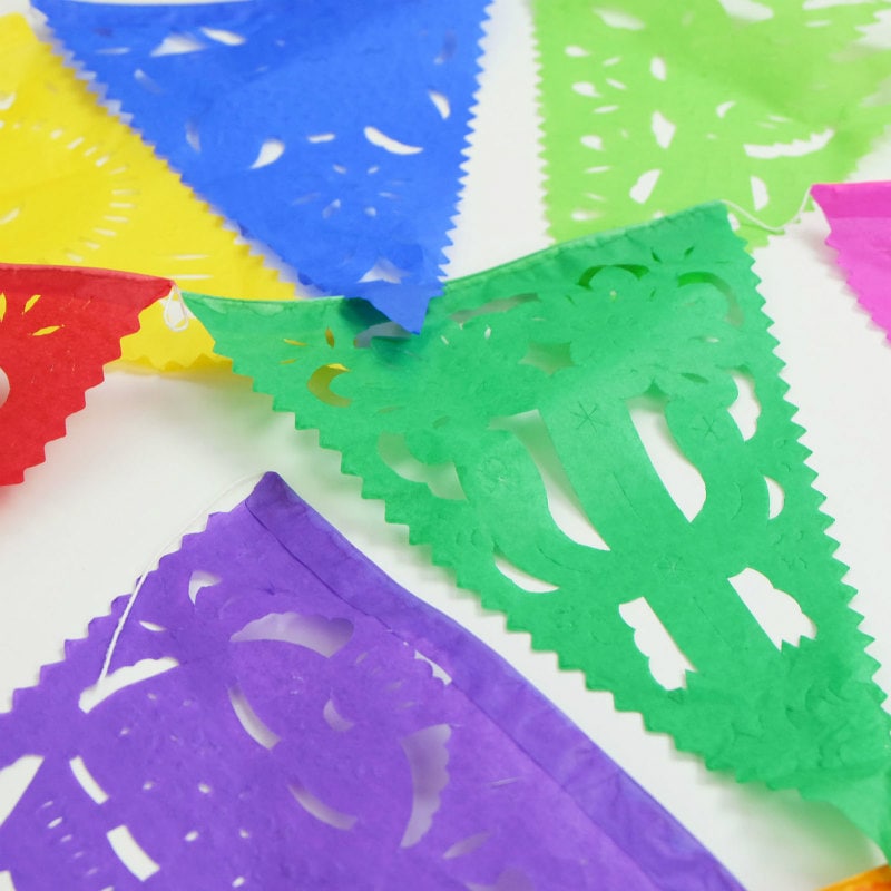 メキシコの伝統的な切り絵細工「パペルピカド」。メキシコでのお祭りの際などにいろいろな種類のものが飾られます。こちらは小さめサイズですのでお部屋のインテリアとして飾りやすいサイズになっています。普段のお部屋やパーティーの時などに飾れば、華やかさが増しますね!