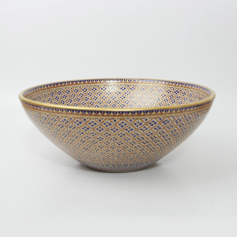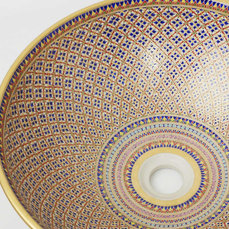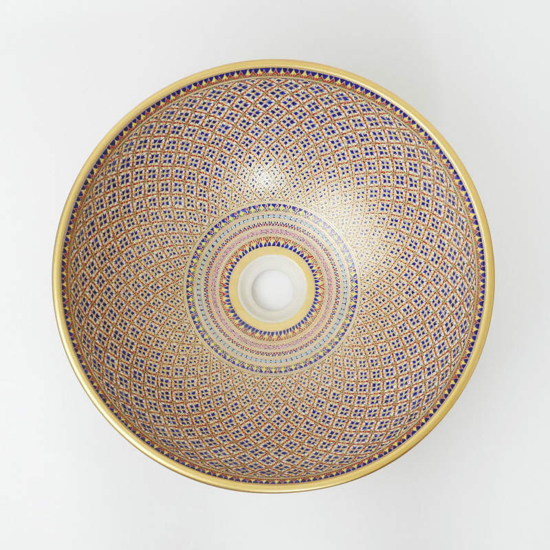 全面に丁寧に手間暇かけて彩色された繊細な模様が施されたベンジャロン焼のシンクです。タイ王室御用達のベンジャロン焼のシンクは見ているだけでも華やかな気分にさせてくれそうです。煌びやかな彩色のシンクですが和の雰囲気にも合いそうです。