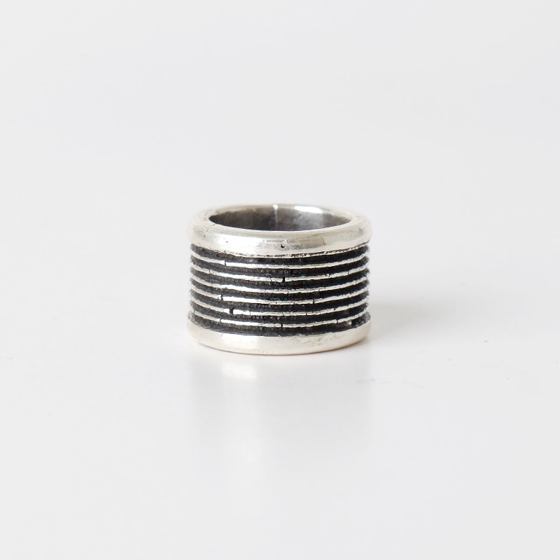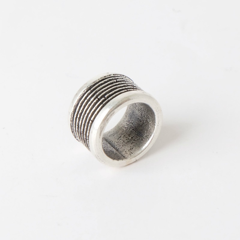 ナバホ族・ハリソンジムのスタンプワークのリングです。幅広の厚みのあるシルバーを使用した、トゥファキャストのボーダーリング。シンプルながらディティールにこだわりがあり、飽きずに長く使い続けられるジュエリー。