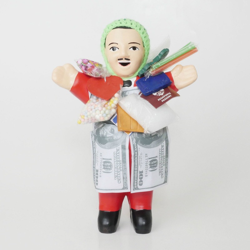 アンデス地方で庶民に愛されている福の神「エケコ」。このエケコおじさんに自分の欲しいもののミニチュアを持たせて願うとその願いを叶えてくれるそう。ここで紹介しているエケコおじさんも穀物に見立てた袋や陶器の家や車、テレビ、ドル札などの紙幣やクレジットカードなどを持っていることが多いです。何が付いてくるかはお届けまでのお楽しみ。もし。。欲しいものが付いてなかったら。。自分で付けてしまいましょう!エケコおじさんは火曜日と金曜日の夜にたばこを咥えさせると効果が高まるそうですよ!