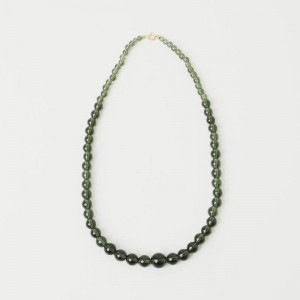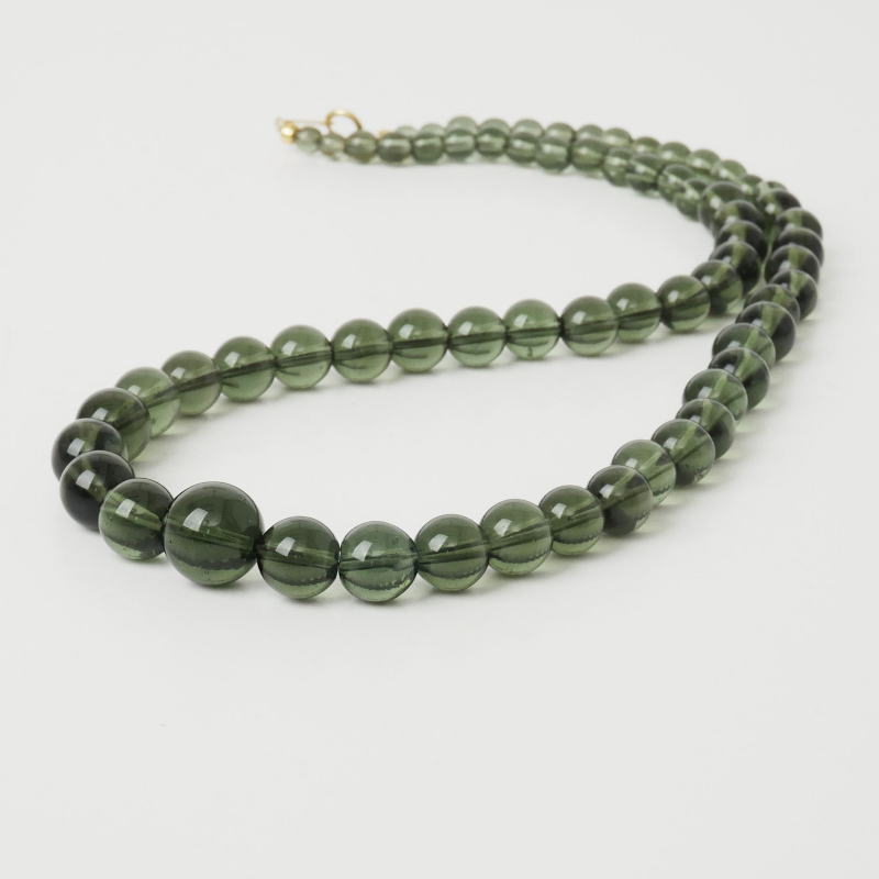 モルダバイトを使用した贅沢なネックレスです。透明感があり色味のととのった粒だけを厳選して組み合わせています。