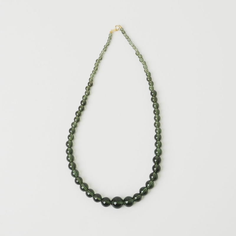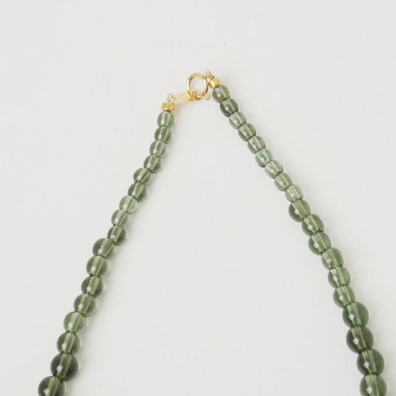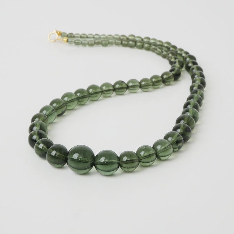 モルダバイトを使用した贅沢なネックレスです。透明感があり色味のととのった粒だけを厳選して組み合わせています。