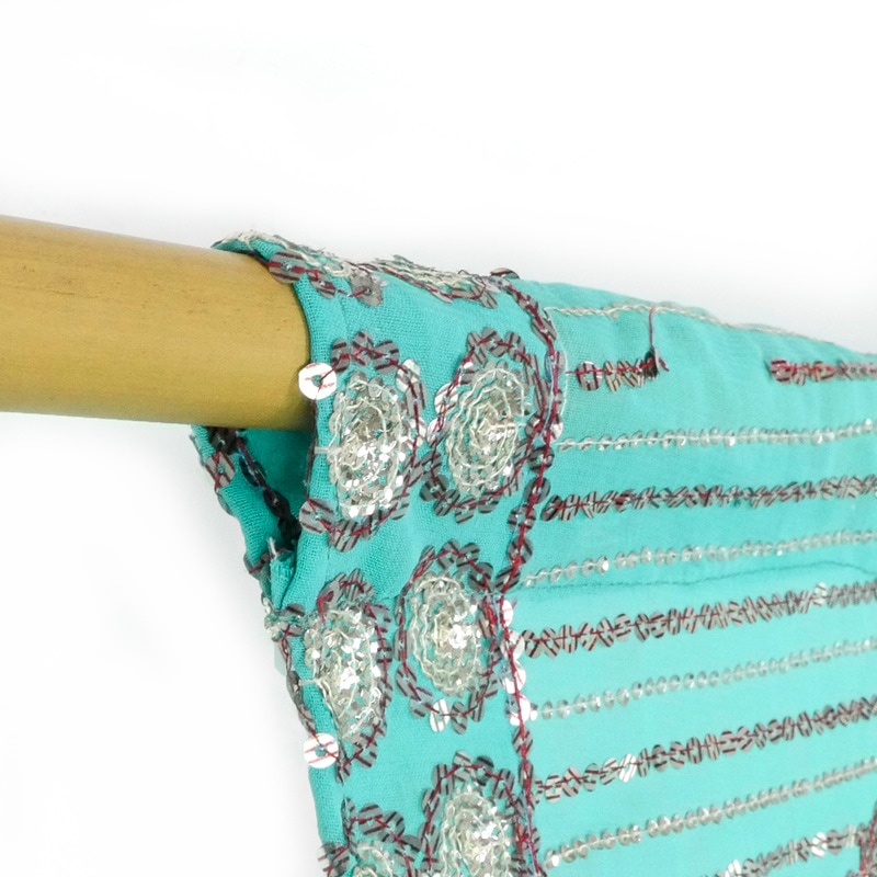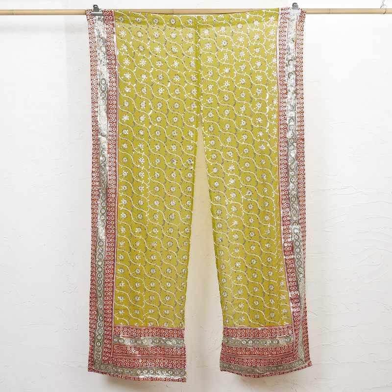 | ご注意 | ※写真と実物とではお使いのディスプレイにより柄や色見などが異なって見える場合がございます。 ※サイズは多少の誤差がございます。 ※ユーズドのサリー生地を使用しておりますので刺繍のほつれや生地のシミなどがある場合がございますがご了承ください。 |
