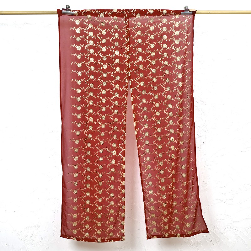 サリー生地にザリ刺繍を施したのれんカーテン。美しい刺繍がお部屋をエキゾチックな雰囲気にしてくれる。ユーズド生地を使用しており、同じものが他にない1点もの。