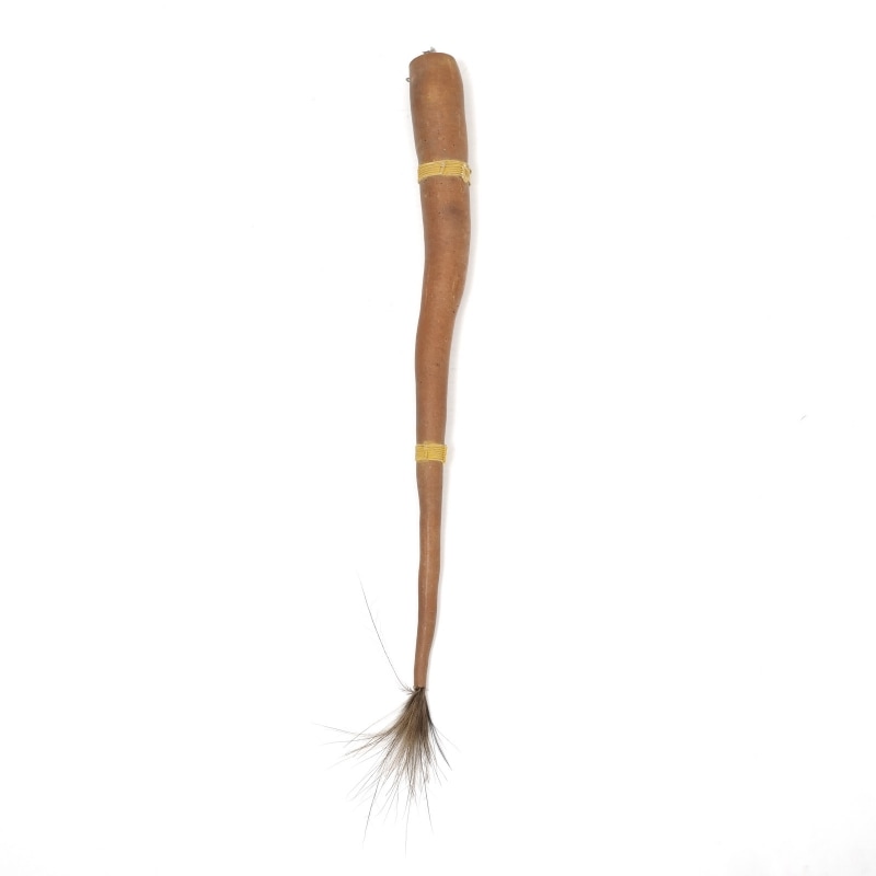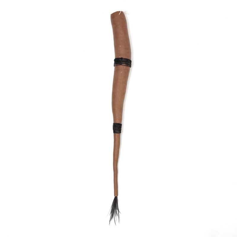 インドネシア、パプア州の先住民族「ダニ族」の男性が着用する装身具。一見「斬新!」と思う用途やデザインだが、現地では日常的にコテカを着けて街中を歩いたり通学をする学生もいる。学者やインドネシア政府の間でも注目されているインドネシア諸島の伝統衣装の1つ。自然にできた汚れやヒビが、現地の雰囲気や空気をそのまま詰め込んだような素材感を一層強くする。民芸品好きの方、そうでない方もこれを機に異文化に触れてみませんか?