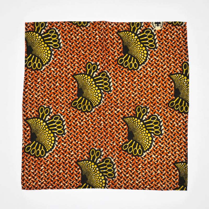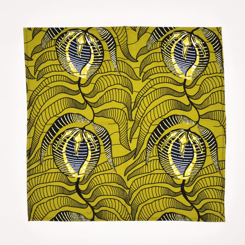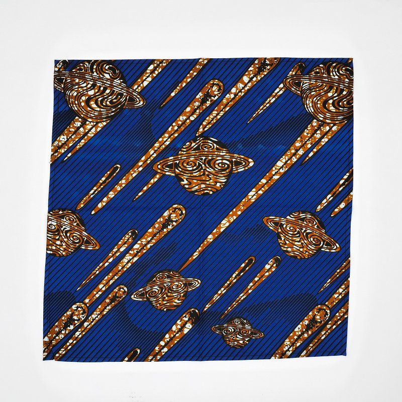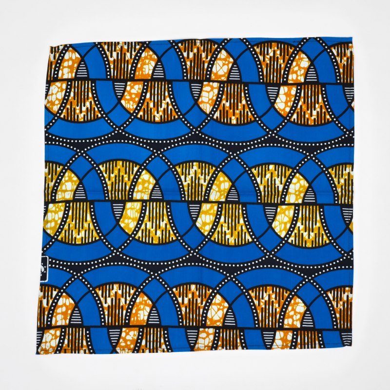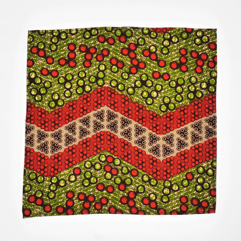 ポップでカラフルなカンガプリントが印象的。用途は無限大でバッグの取っ手に付けたり、頭に巻いてヘアバンドとして使ったりとお洒落のワンポイントに。他にもハンカチやスカーフなど様々な場面で活躍するアイテム。