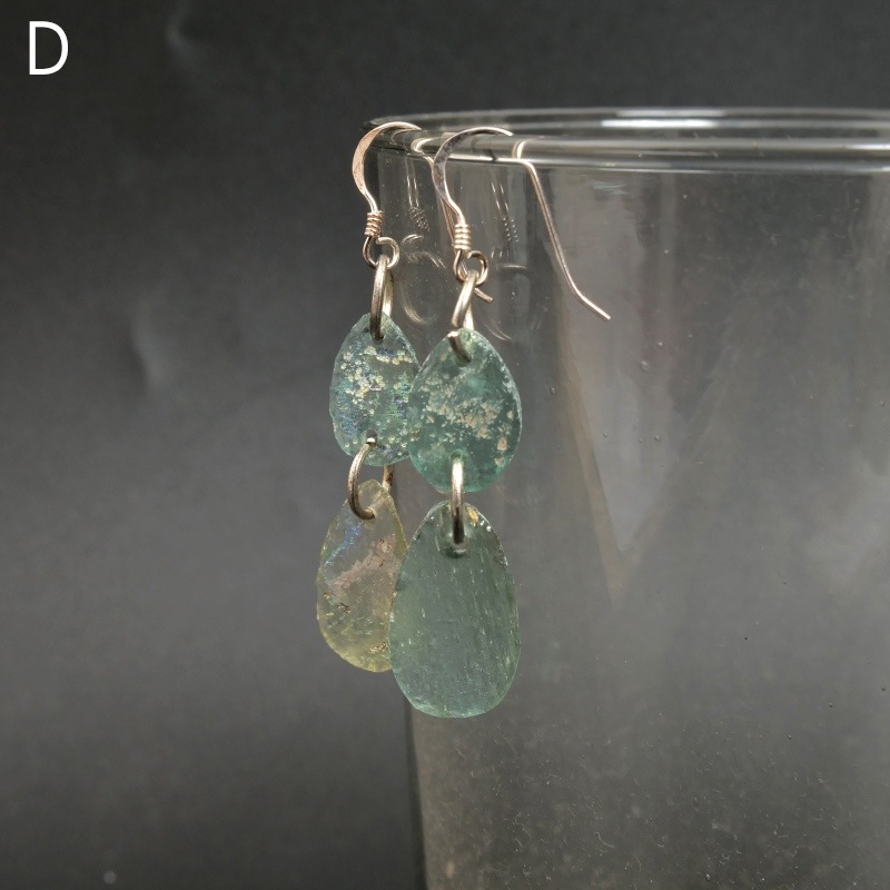 時を越えたローマングラスを連ねたピアス