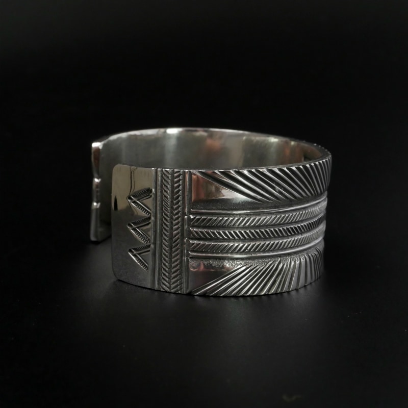1967年アリゾナ州スティームボート生まれ、ナバホ族のトップアーティストの一人です。Thomas CurtisやEddison Smithなど多くのシルバースミスを生み出した家系の一人で、姉であるPat Bedonieもよく知られたアーティストです。 深くシャープなスタンプと、細かなカットワークを駆使した作品は繊細でいながらワイルドな迫力。男性にも女性にも似合う、クールなインディアンジュエリーを作り出します。