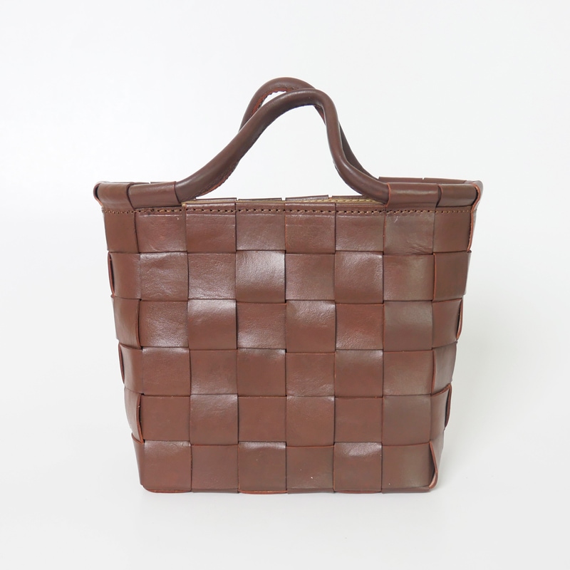 小ぶりな手提げバッグ。肩紐を付けてミニショルダーとしても使える2wayのレザーメッシュバッグ。