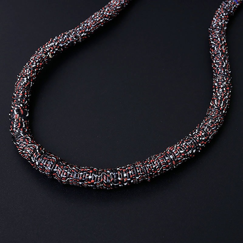カンネッテビーズ(cannette)は、側面に縞模様の入ったビーズです。縦方向にガラスを引き延ばして冷ました後にカットします。色模様、太さ、長さは自由に作れます。細くカットしたものはカンネッテと呼ばれています。別名エジャビーズ(AJA)など。