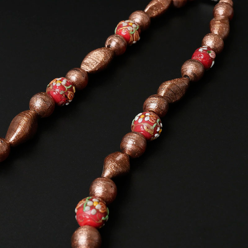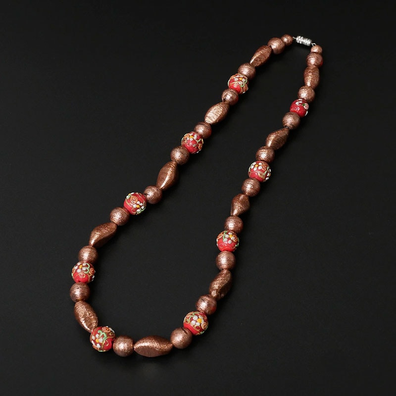 レッドカラーのビーズとメタリックカラービーズのMIX.。金具付きなのですぐにご利用頂けます。