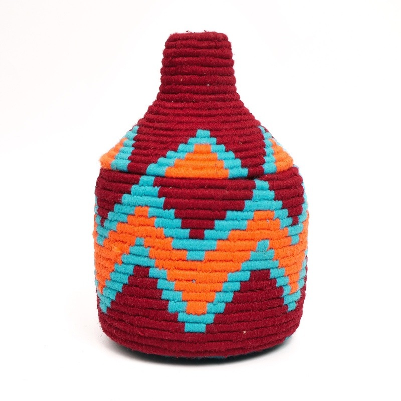 元々は、主食であるパンを窯に持ち込むときや、焼きあがったパンや穀物などを保管しておくバスケットとして使用されていましたが、モロッコ民芸品の定番として紹介されることが多い商品です。