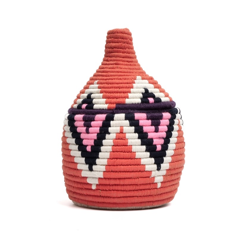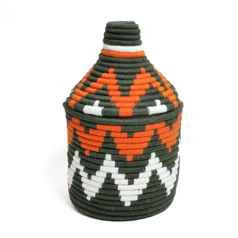 ベルベル人とは、モロッコやアルジェリアなどの北アフリカに暮らす先住民族の総称で、モロッコ女性の手仕事で作られた蓋付きのバスケットです。