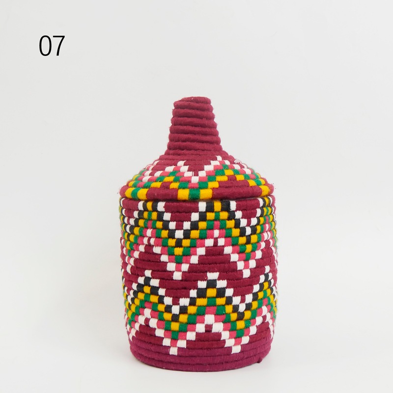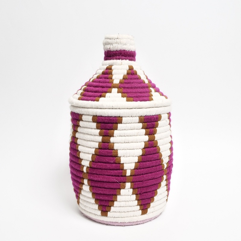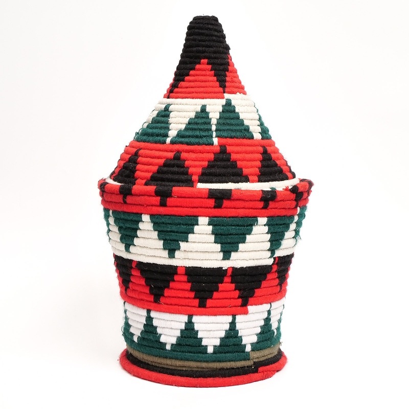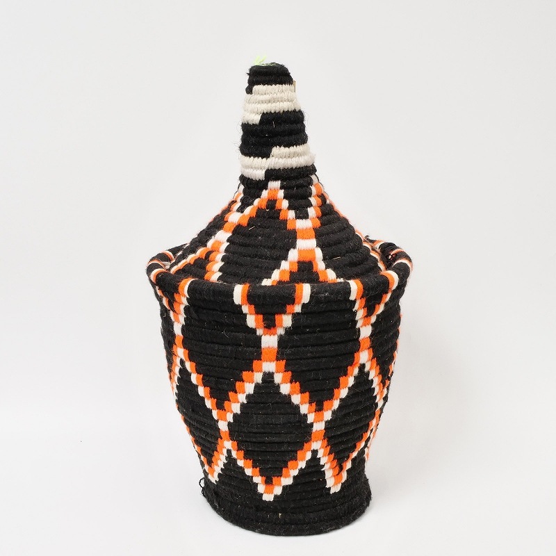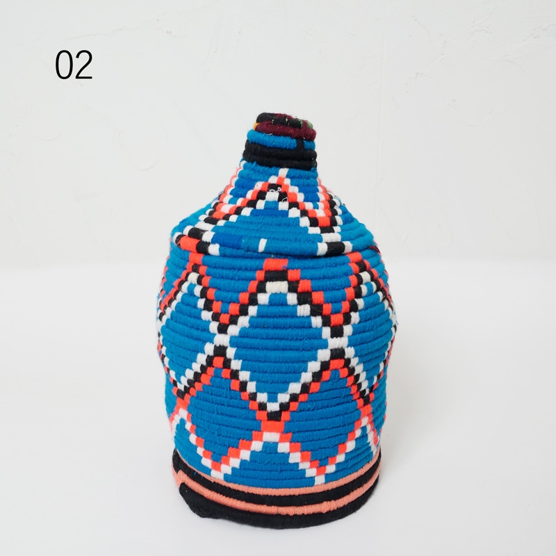 ベルベル人とは、モロッコやアルジェリアなどの北アフリカに暮らす先住民族の総称で、モロッコ女性の手仕事で作られた蓋付きのバスケットです。
