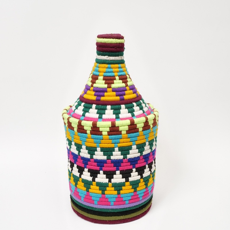 元々は、主食であるパンを窯に持ち込むときや、焼きあがったパンや穀物などを保管しておくバスケットとして使用されていましたが、モロッコ民芸品の定番として紹介されることが多い商品です。