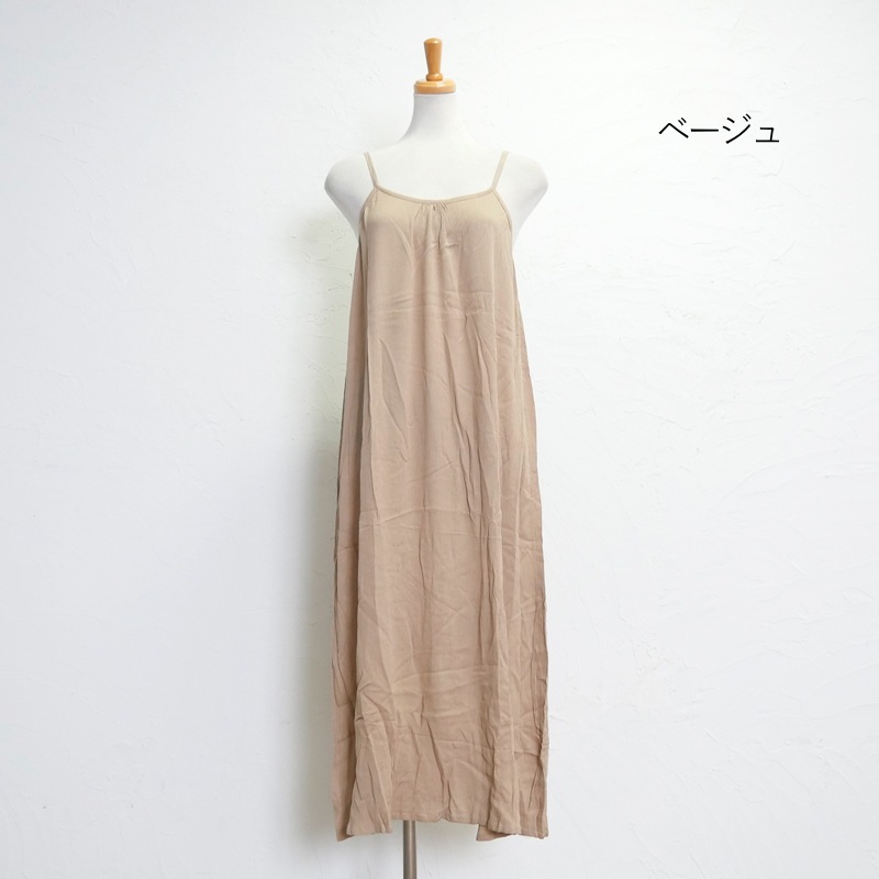 柔らかい肌触りのインナーキャミワンピース。透け感のあるワンピースのアンダーウェアとしても大活躍まちがいなし。肩紐の長さはアジャストでき、ワンピースなどに合わせて丈感の調整ができます。