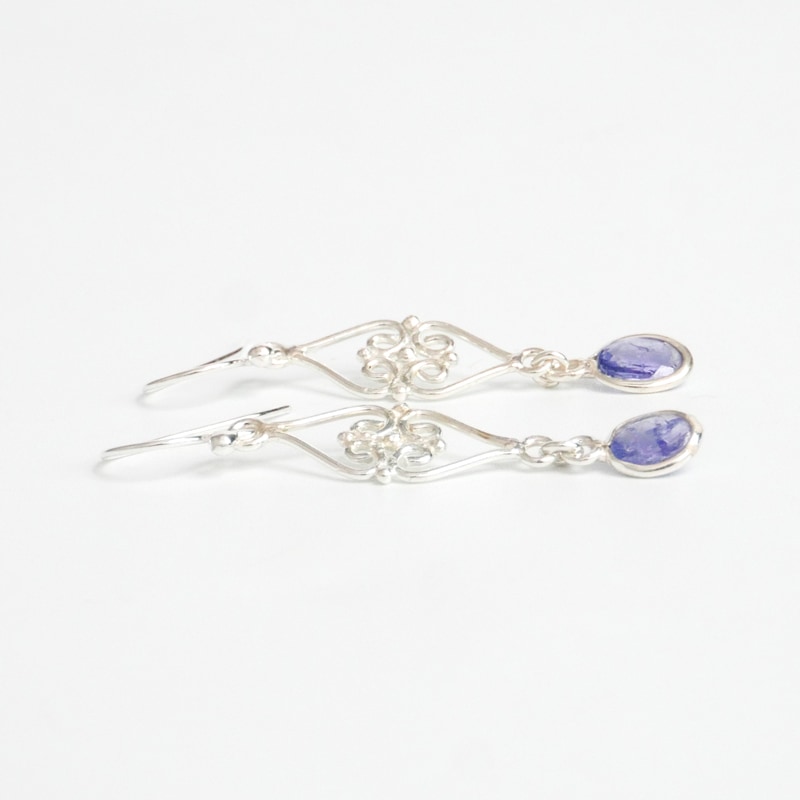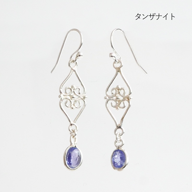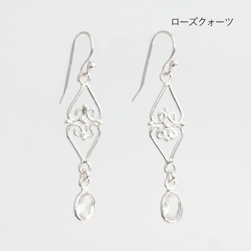 揺れるアラベスク型のピアス。小ぶりなデザインながらも、カットストーンの程よい存在感が女性らしさを引き立たせてくれるアイテム。