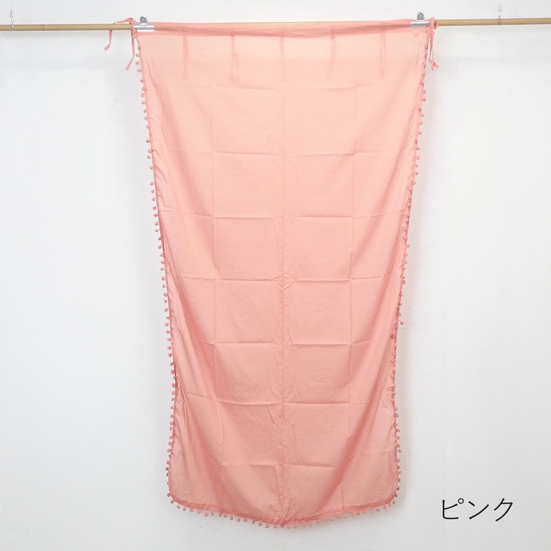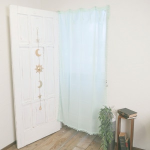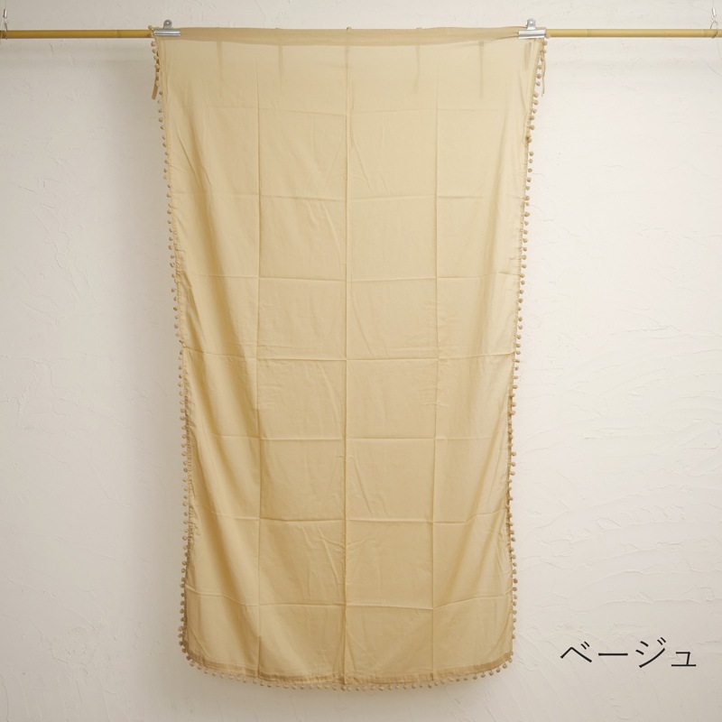 チャームがアクセントになっている可愛いポンポンカーテン。薄手生地なのでレースカーテンや間仕切りアイテムに使える。ナチュラルやガーリーなインテリアにピッタリ。