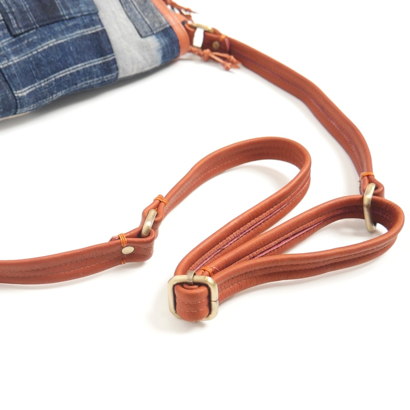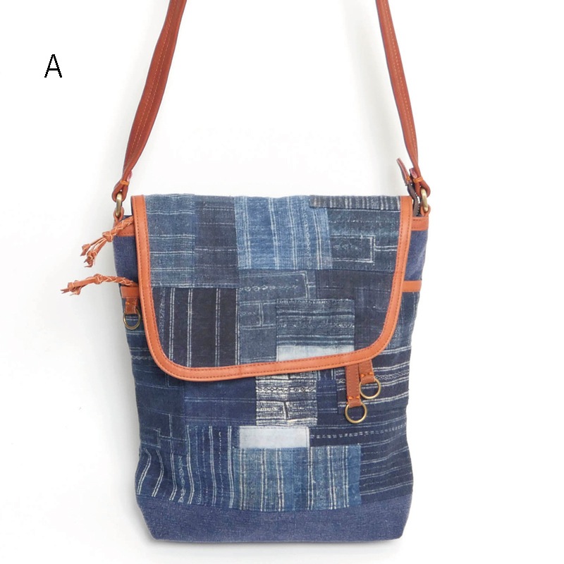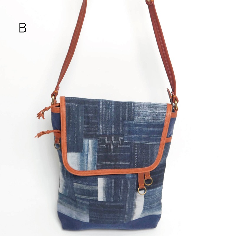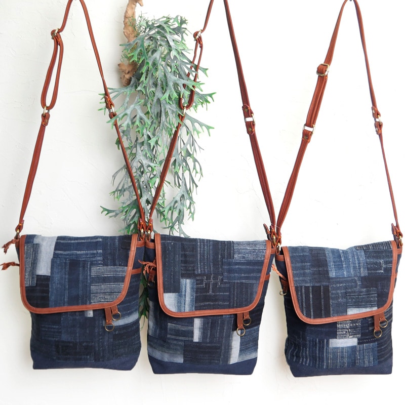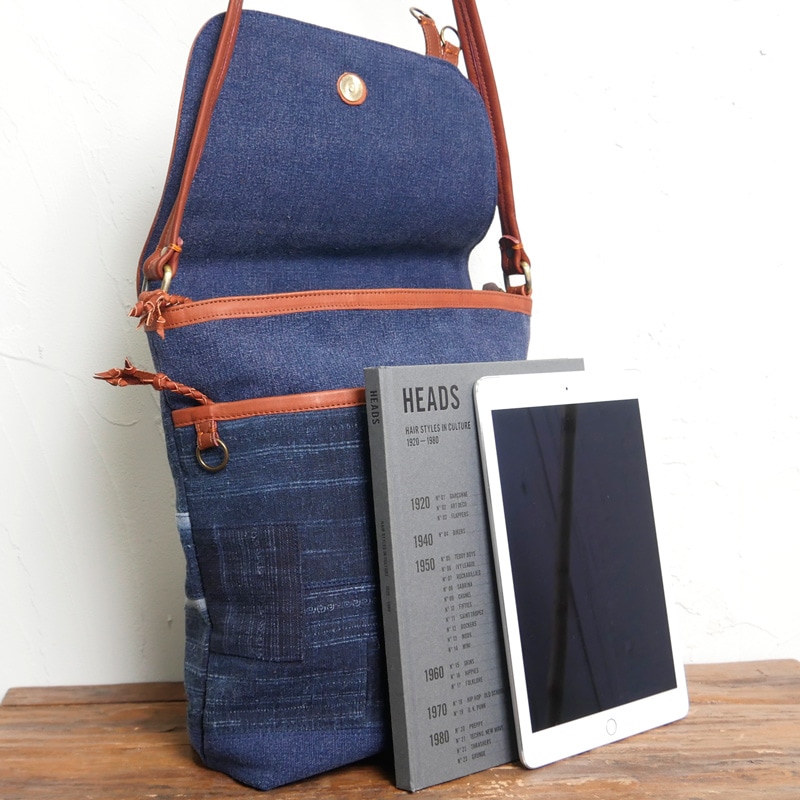 手織りのヘンプやコットンの生地に1枚1枚丁寧に染められたことで生まれた優しい発色と素材感。その布をバッグ全体に施した1点物。フラップ部分にまるかんが付いていて、好みのチャームなどでアレンジ出来るのも嬉しい。