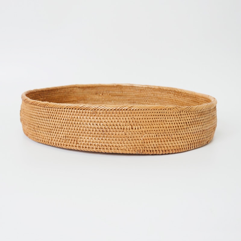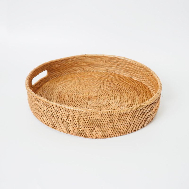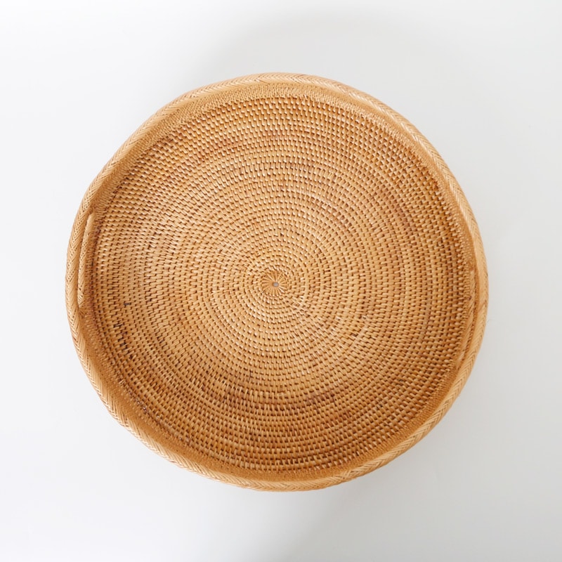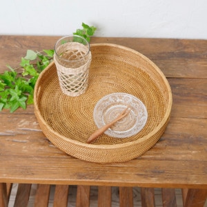 細かく編み込まれたアタからは品が漂う。取っ手が付いて持ち運びやすく、掴みやすい。食事を運び、そのままランチョンマットとしても使える。いつもの食卓にリゾートライクな雰囲気を演出。新聞や本等の収納、リビングやオフィス等あらゆる場面で。