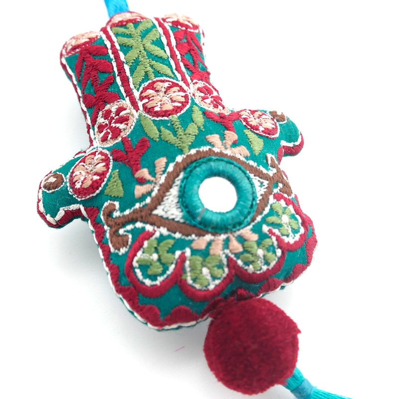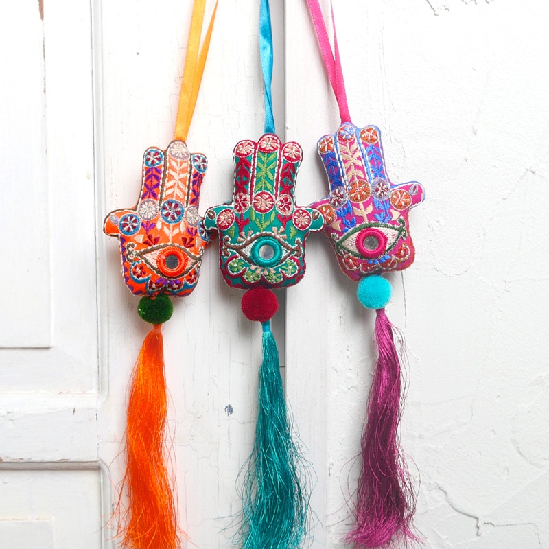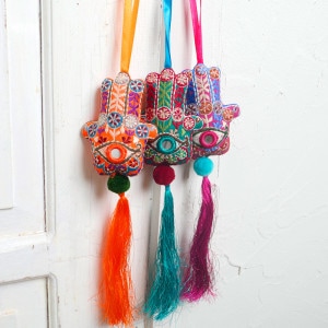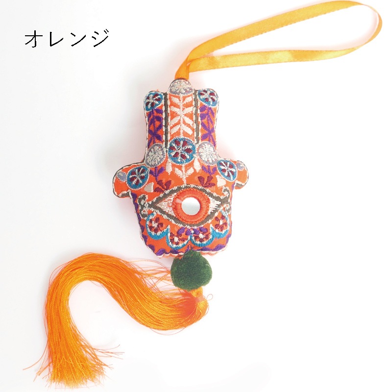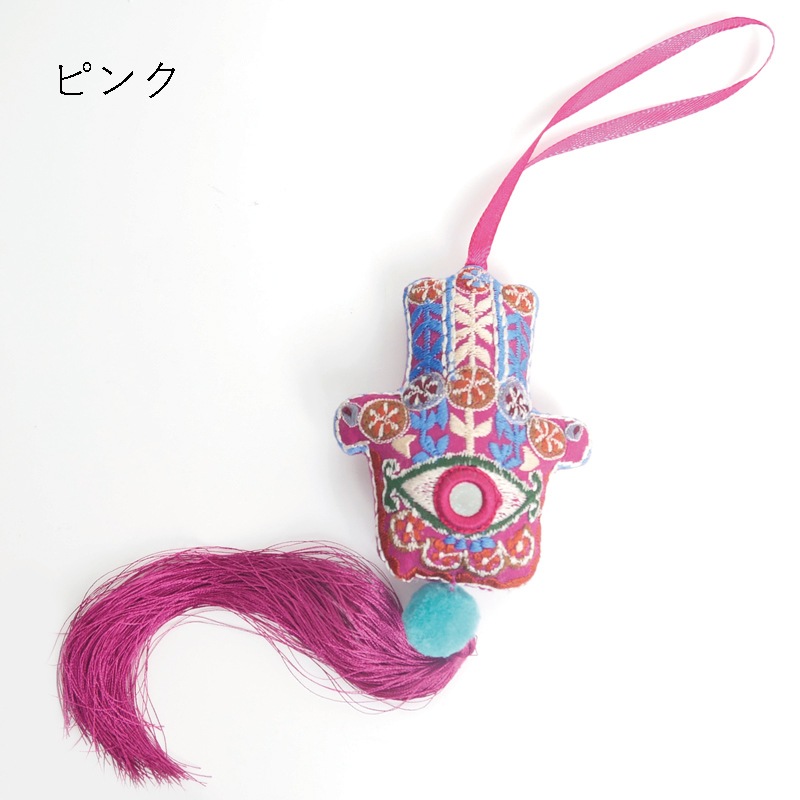 1500年以上前から中東で伝わるポピュラーなお守り「ハムサ」。それをカラフルな刺繍とボリュームのあるタッセルで可愛く、ポップに仕上げたアイテム。お守りとして持っておくことはもちろん、部屋に飾ったり、キーホルダーとして鞄に付けたり多様な使い方ができるのも嬉しい。
