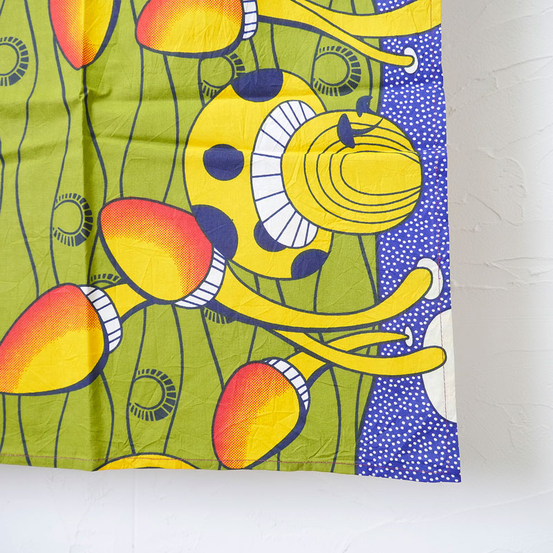 アフリカンプリントならではのカラフルでポップな魅力が詰まったマルチクロス。テーブルクロスやカーテンの代用等、まさにマルチに使えるサイズ感。同シリーズの他の商品と合わせて使えばビビットだけど素朴で優しいインテリアの出来上がり。