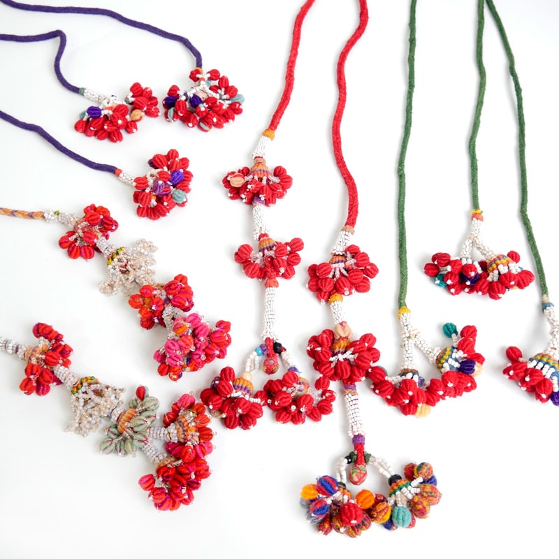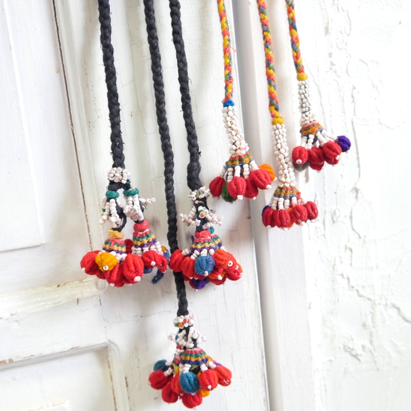 先端に小粒のビーズや飾りがしっかりと結び付けられ、小振りながらも存在感のあるタッセルが魅力のヴィンテージ品。インドの遊牧民バンジャラ族はラクダの装飾に使用したり、ベリーダンスの衣装の装飾などマルチに使用している。カーテンタッセルやベルト、バッグチャームなどのファッションアイテムとしても活躍できる。