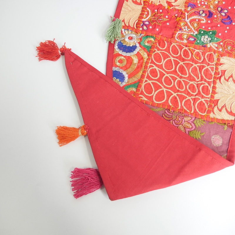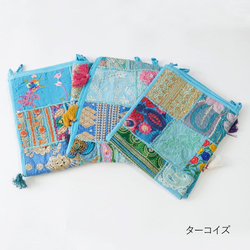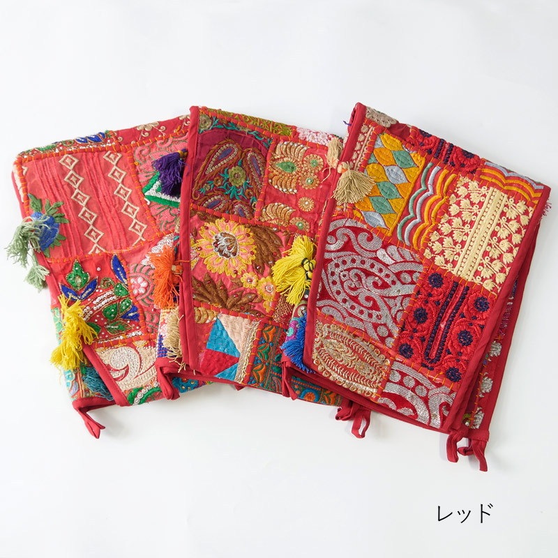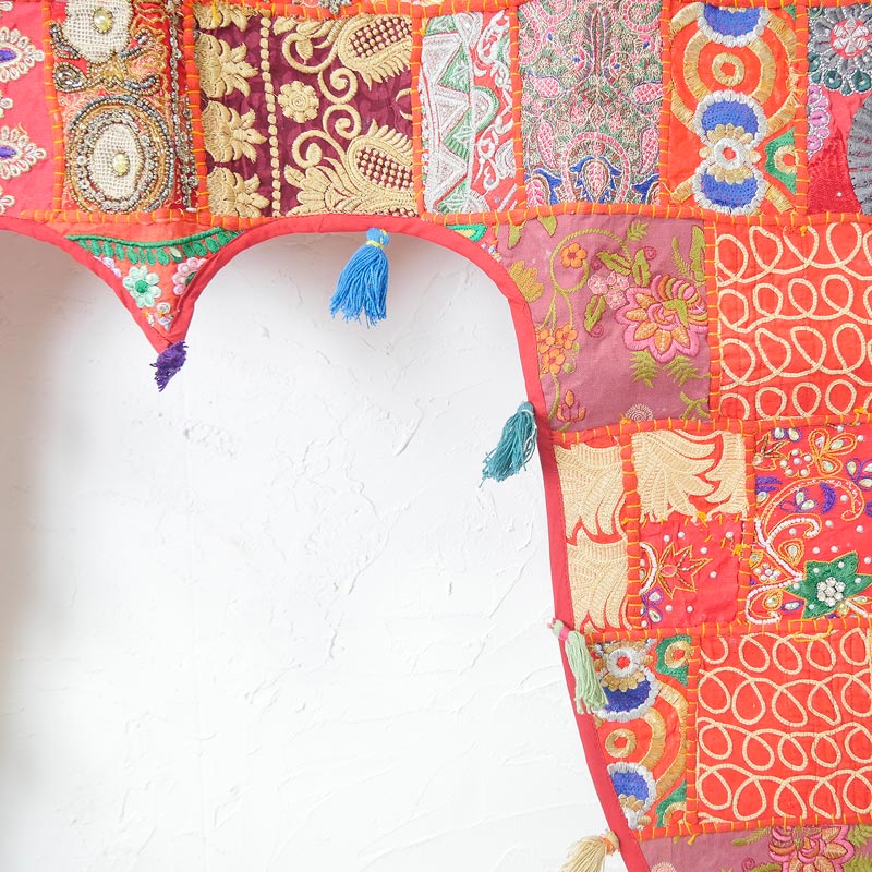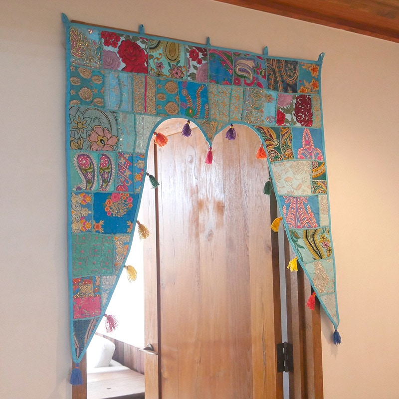 カンバディアとはインド人女性が着る伝統服「カンバッド」の生地を使ったパッチワークのこと。スパンコールやビーズの刺繍が施された華やかな「トーラン」は、幸せを家へ招き吉兆を迎える縁起物。インドらしい鮮やかなタペストリーとなっており、玄関扉や室内窓、天井など場所を選ばず飾れる魅力的な1枚。