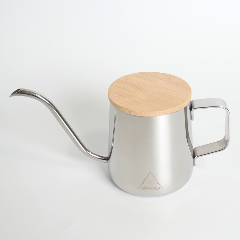 注ぎ口が細く、ハンドドリップコーヒーが楽しめるポット。沸騰したお湯を入れると、コーヒードリップに最適な温度になる。ステンレス製で丈夫で長持ちする。バンブー素材のふた付きで、見た目も良く、インテリアにも馴染むデザインがポイント。